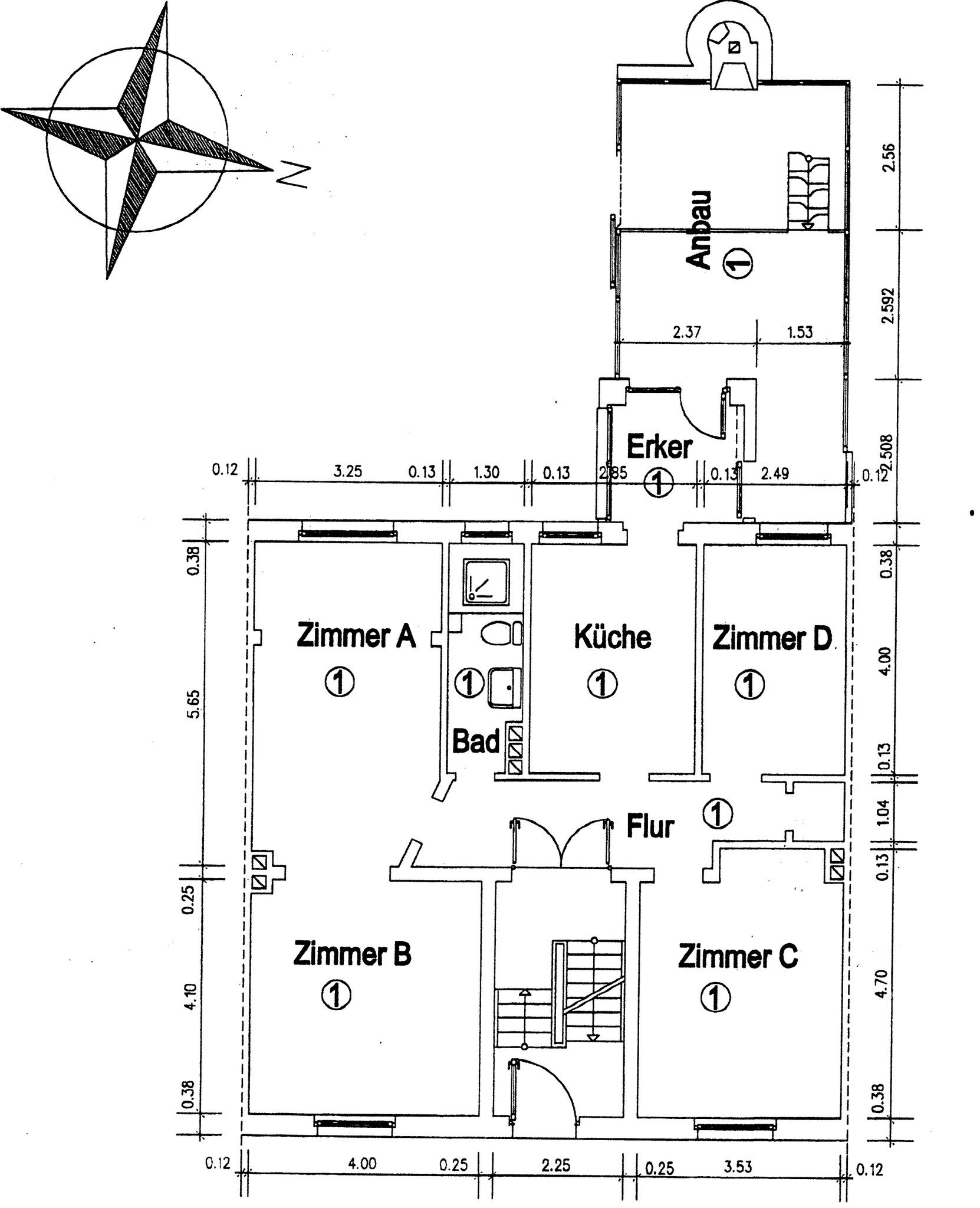 gut und klassisch aufgeteilt und besteht aus 4 Zimmern, einer geräumigen Küche, einem typischen Altbaubad mit