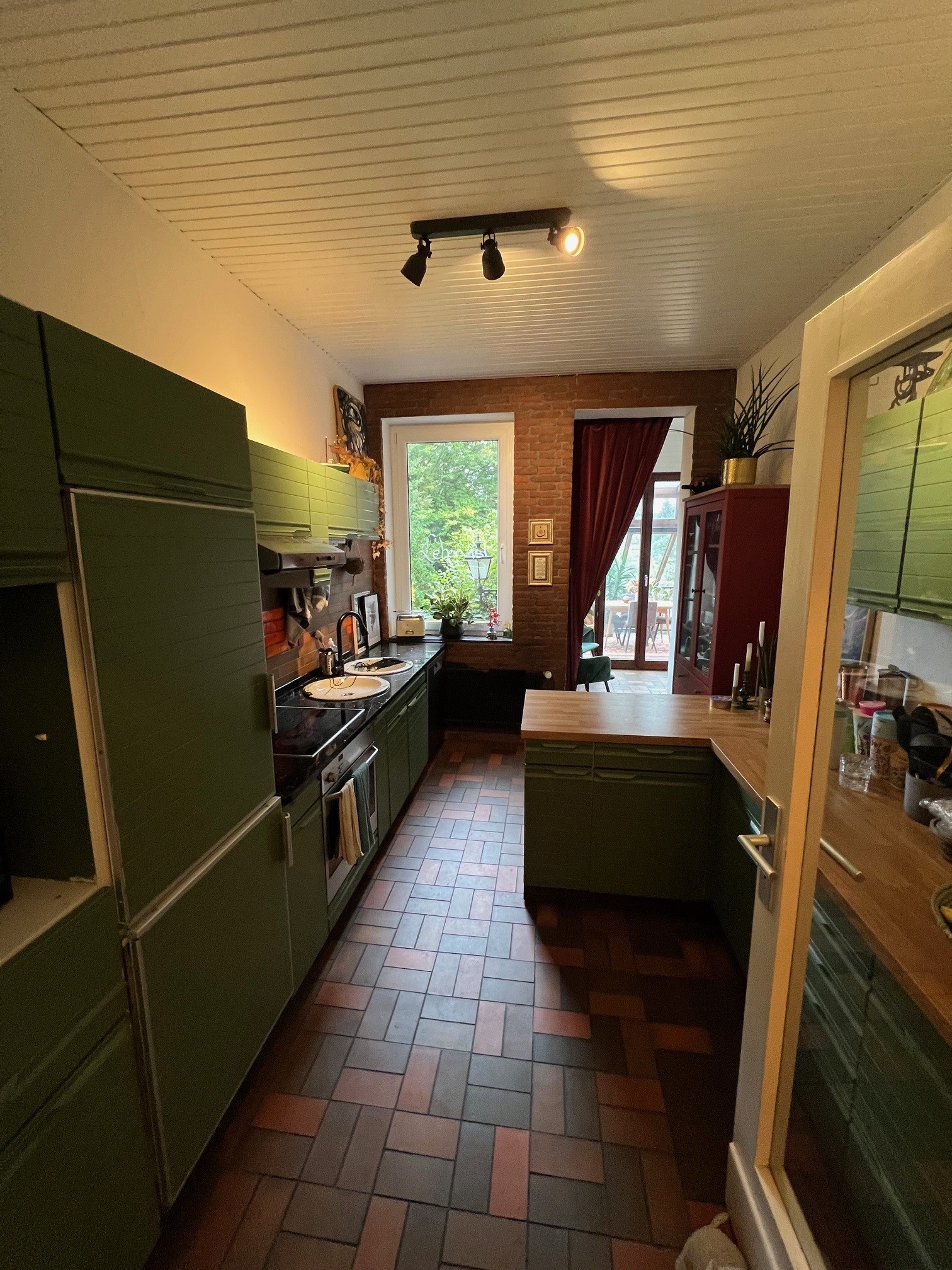pflegeleichten Fenster bestehen aus Hartholz und sind in einem guten Zustand.Von der Küche geht es auf